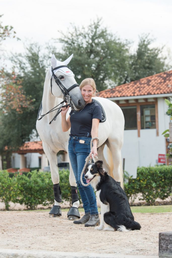 Katarina lives in Aledo, Texas with her family and their animals, including Swedish Warmblood horses Sunny and Raphael, a German Shepherd–Malinois cross named Spot, a Border Collie named Tri, and their rescue cat Camille.