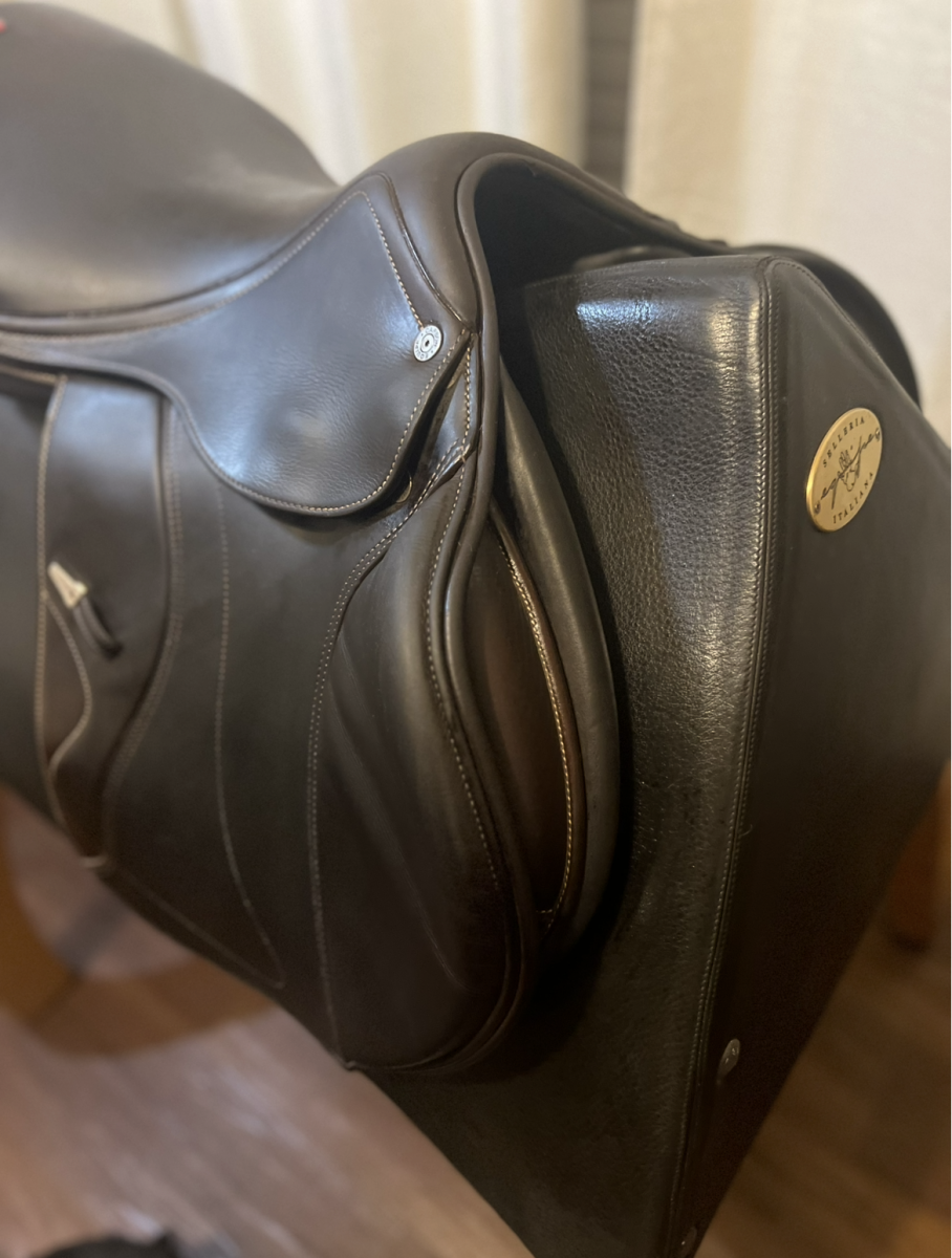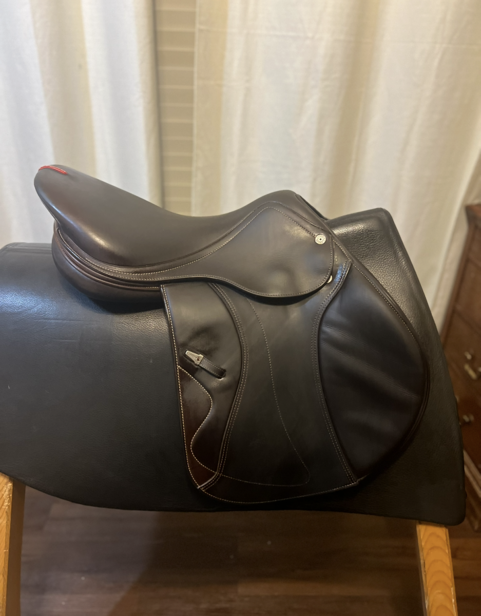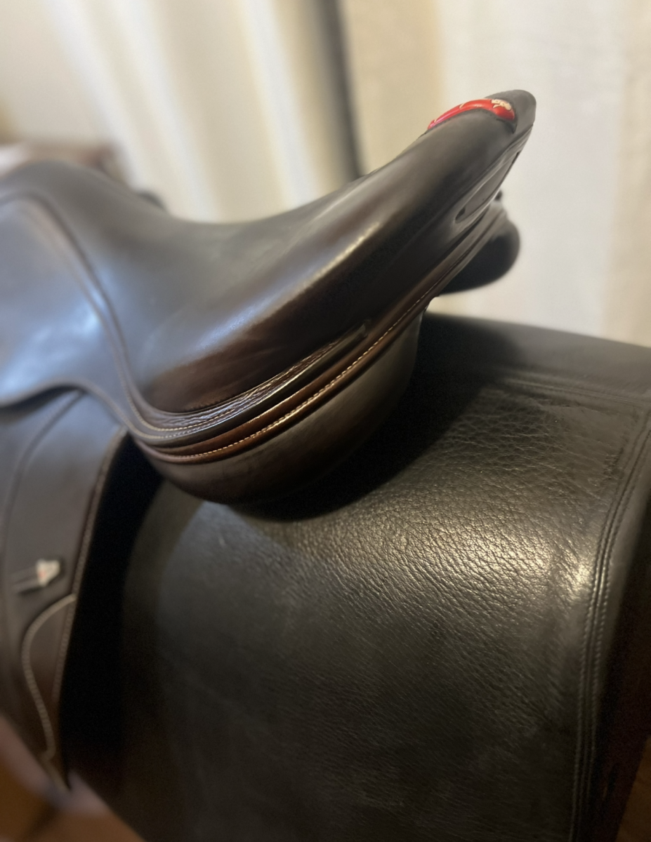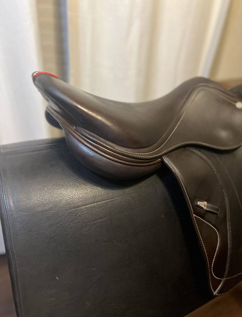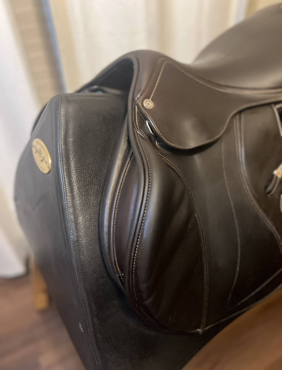 This saddle is in excellent condition. Manufactured end of 2023. 17 seat with forward flap. Calfskin. This carbon fiber saddle has a changeable tree.