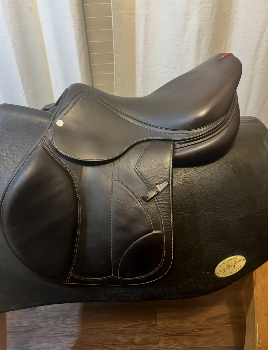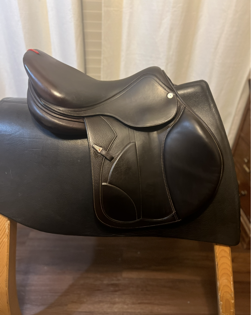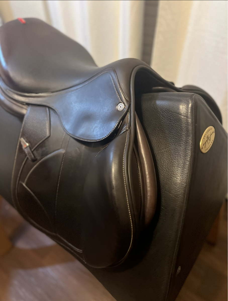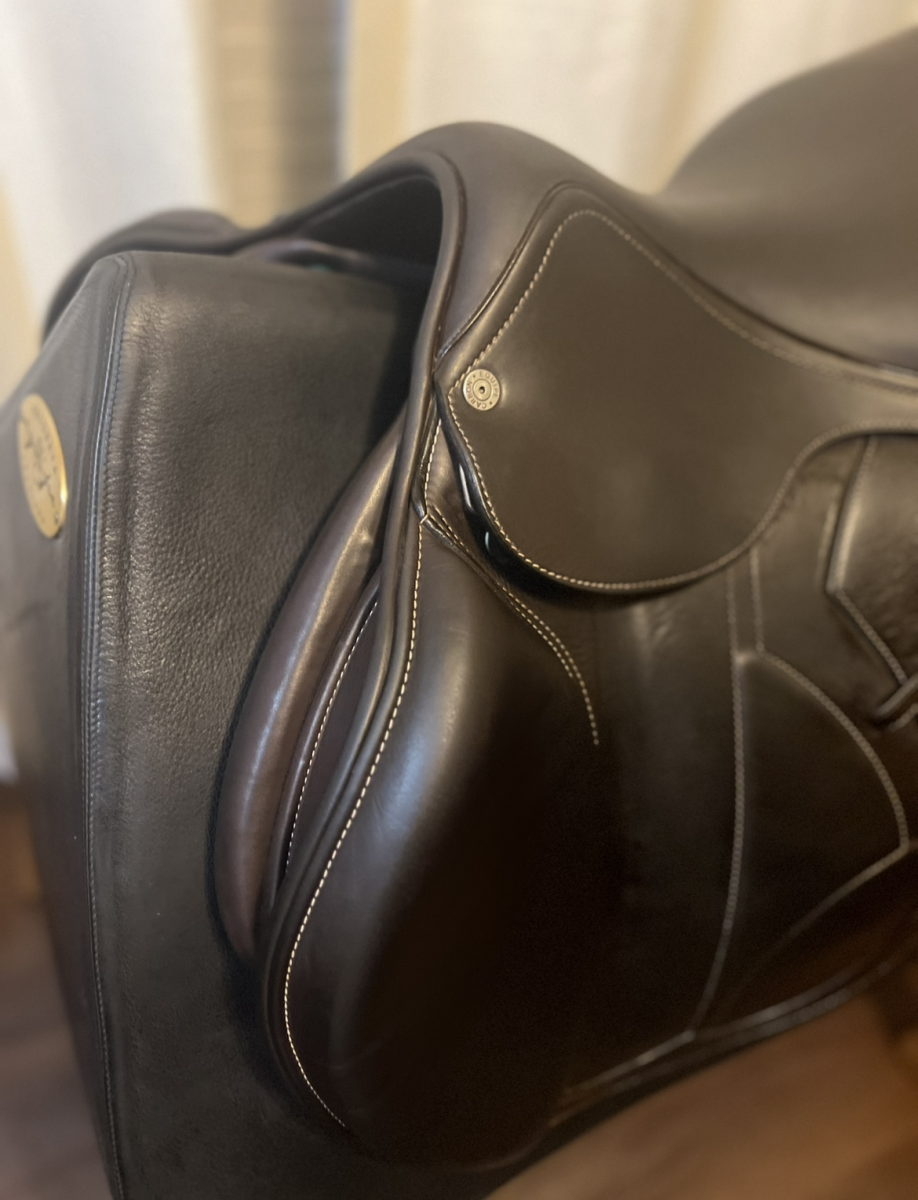 This saddle is in excellent condition, only used as demo. Manufactured end of 2022, only used as demo. 17 seat with forward flap and extra padding in knees, very comfortable and gives a good secure feel. Calfskin.