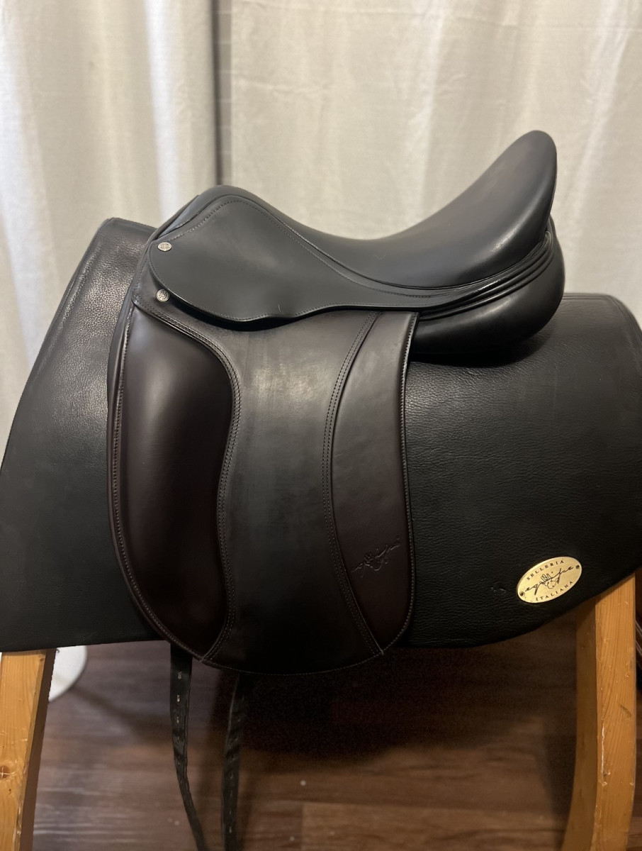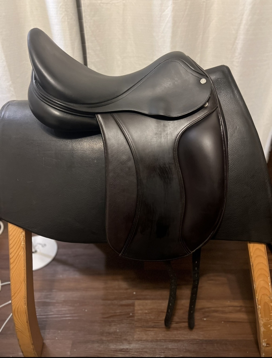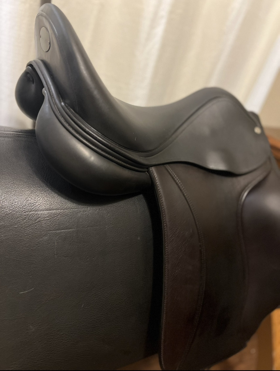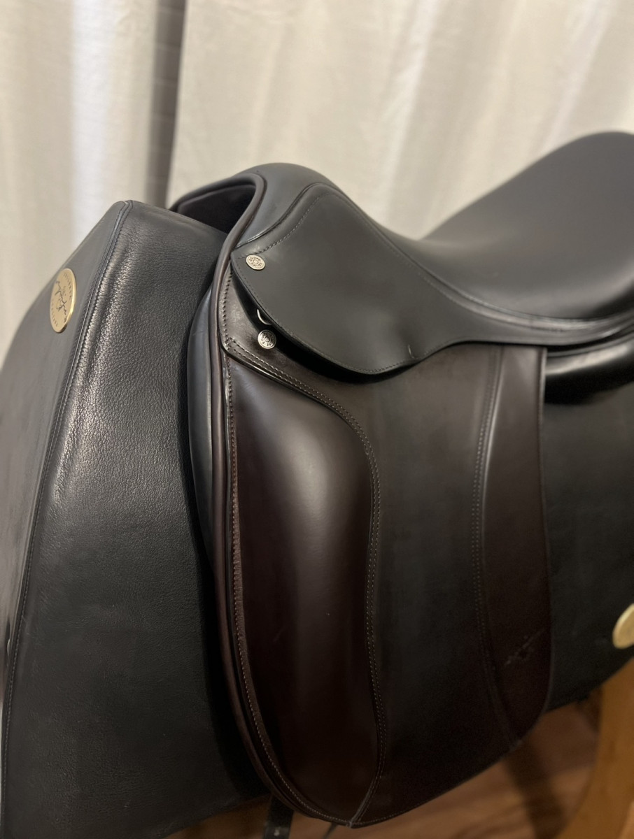Elegance 17,5inch, this is a gem, black seat with new brown flaps. Calfskin with grip flap. Excellent condition. +1, +1. Saddle is 2018 . Call or text me for fitting.