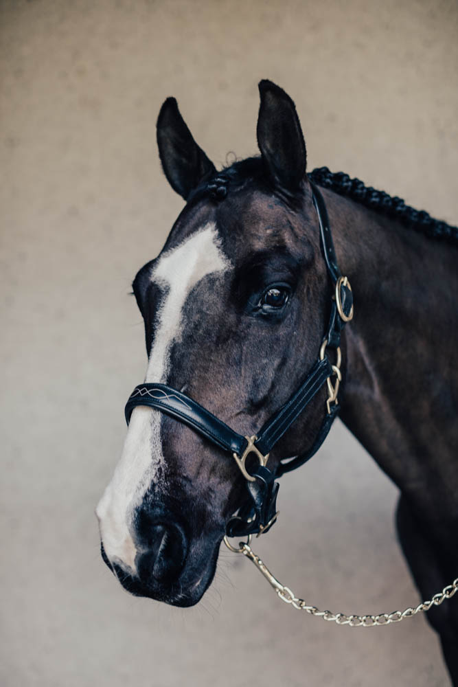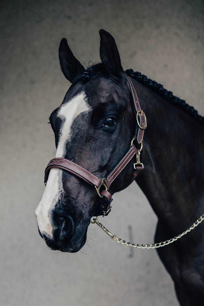 The Equipe Emporio Padded Leather Halter is made from beautiful Italian leather, and padded to ensure complete comfort for your horse. This halter features fancy stitching over the noseband, adding a touch of elegance.