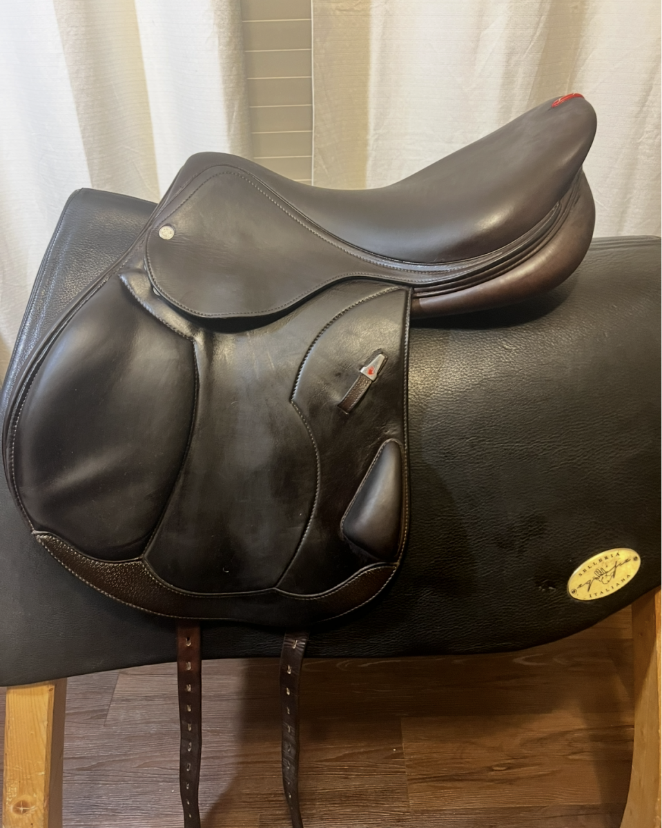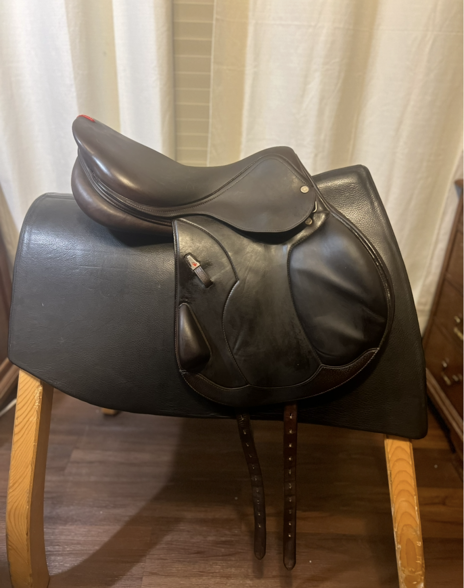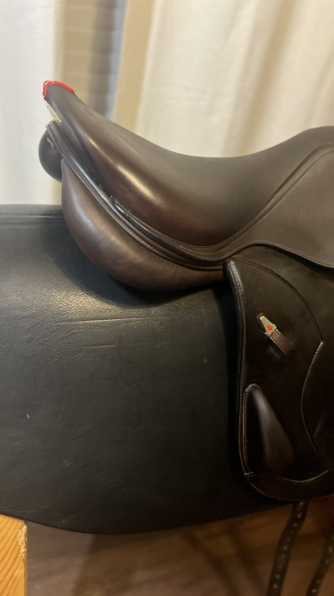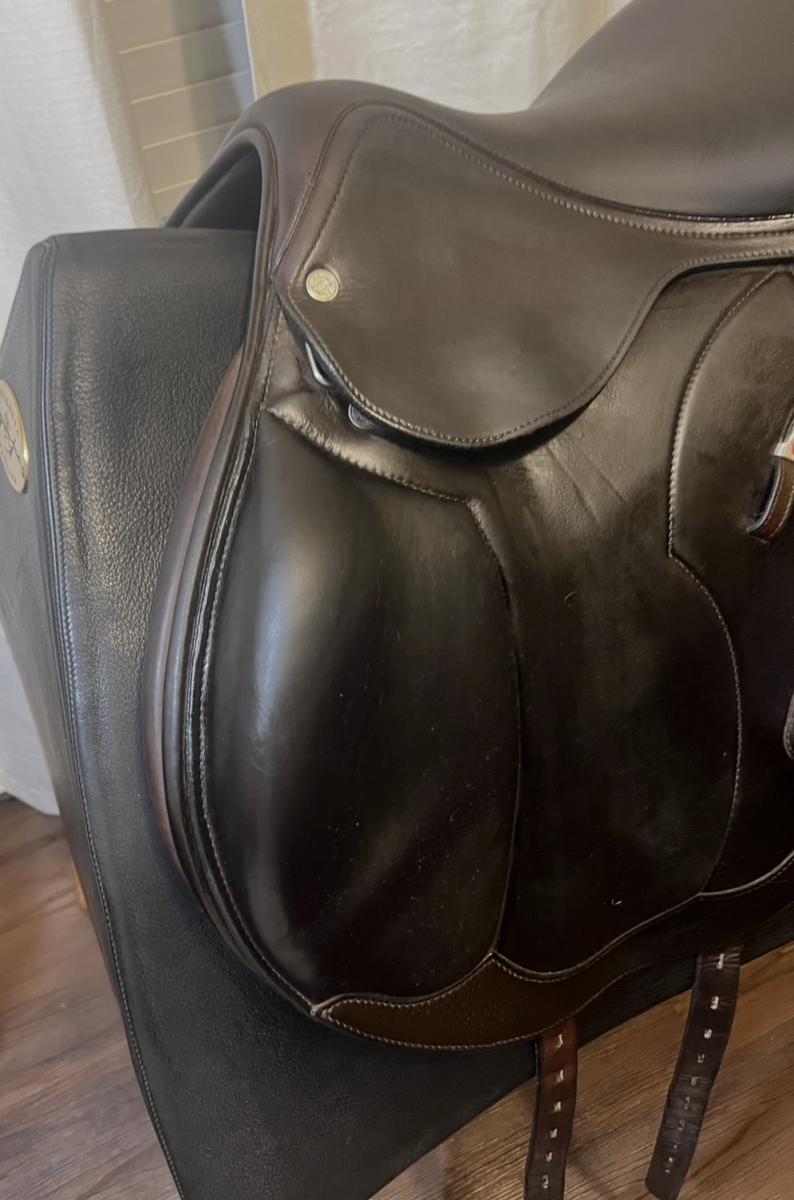 This saddle is in excellent condition, (2022). 17,5 seat with forward flap, calfskin leather. Monoflap