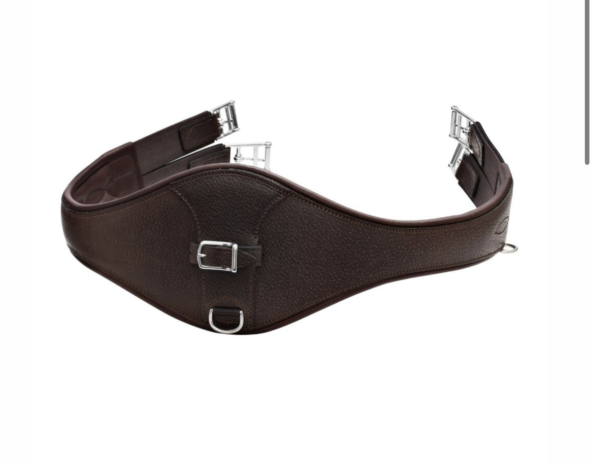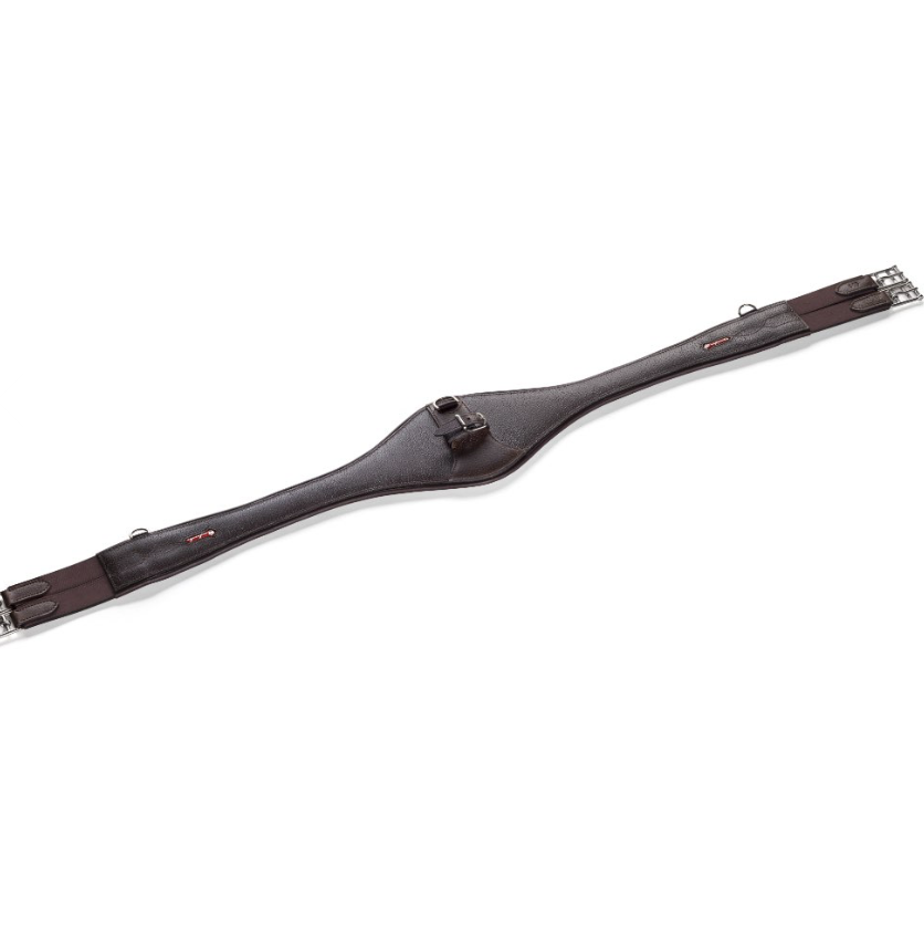 The Equipe Caramella anatomical girth features bi-stretch elastic and stainless steel roller buckles. Dual martingale attachment.