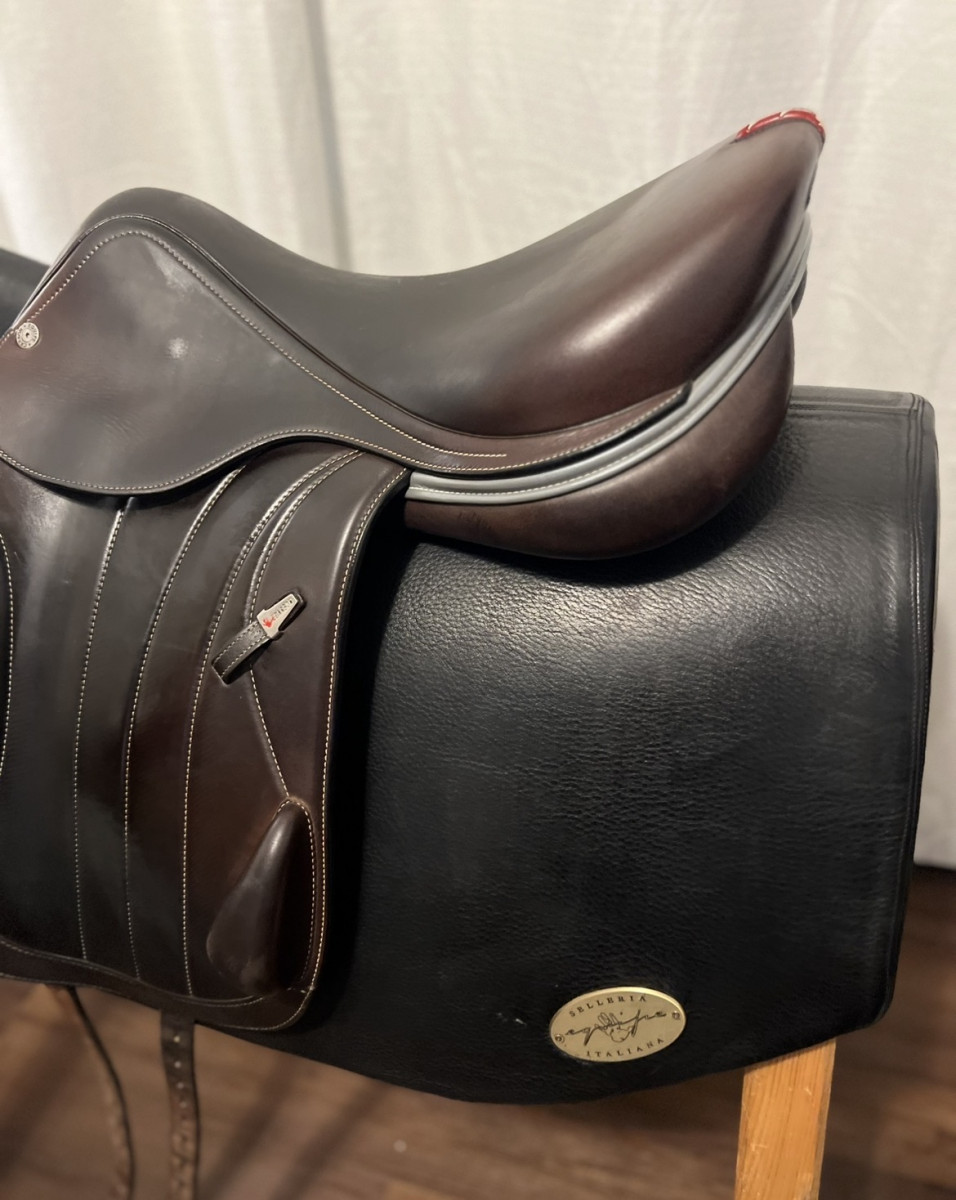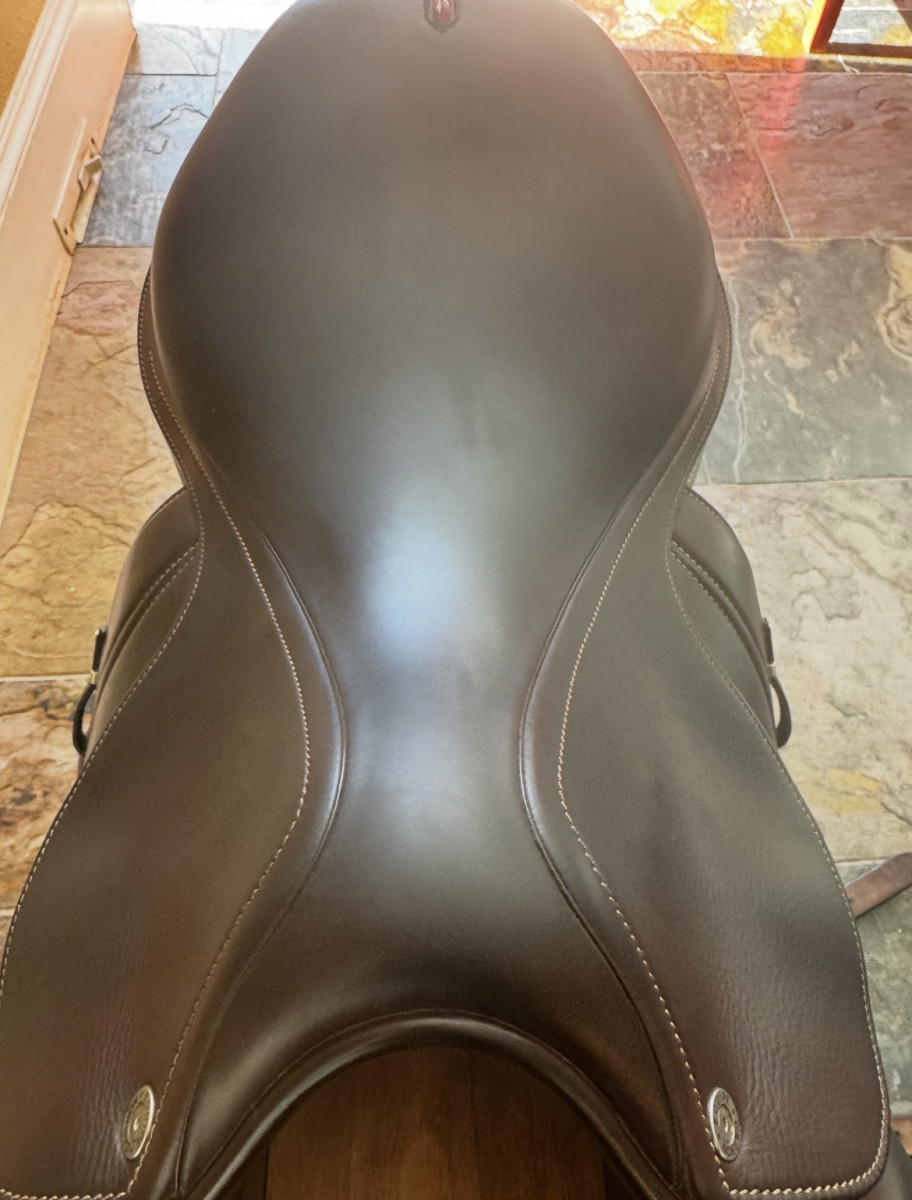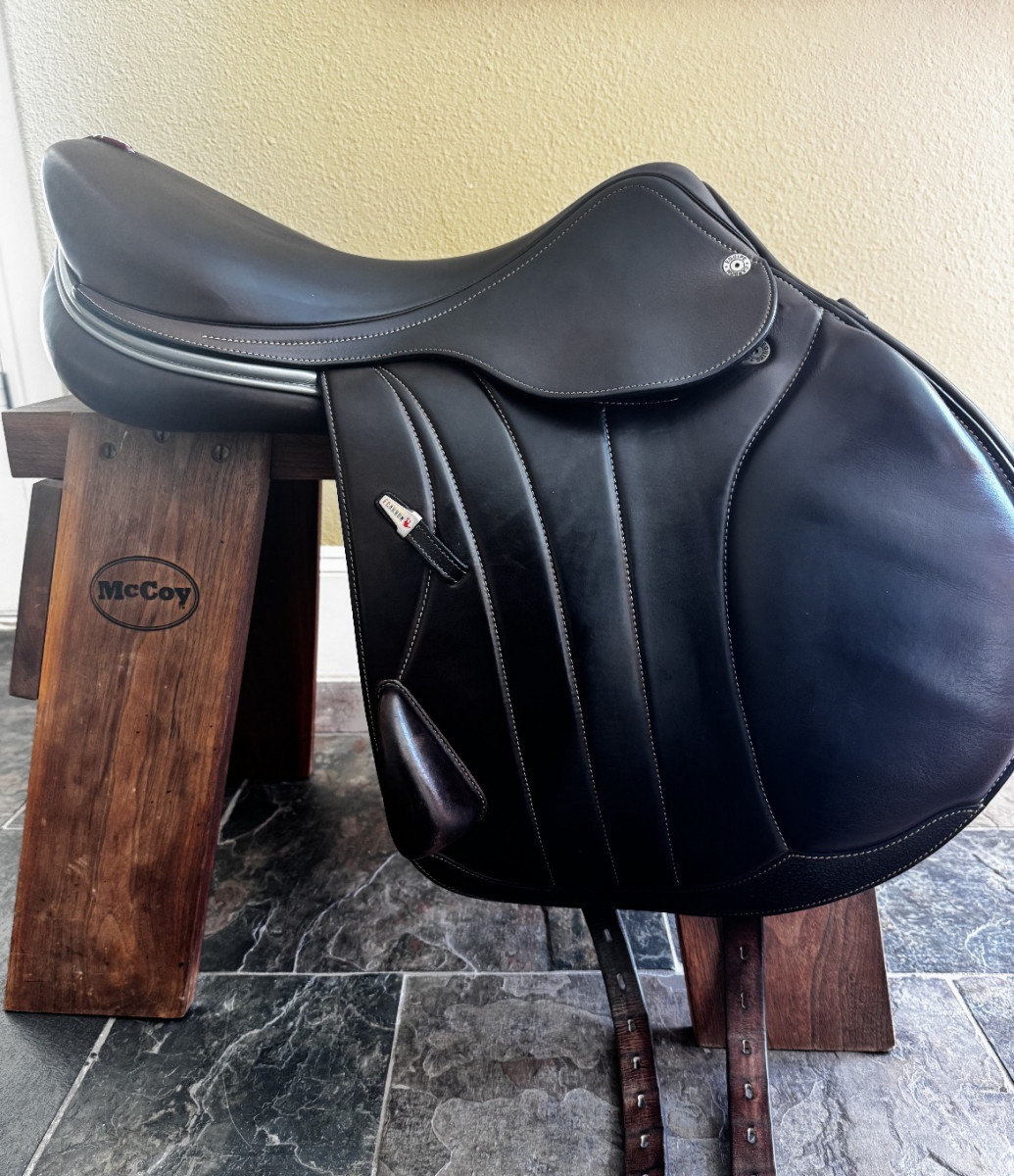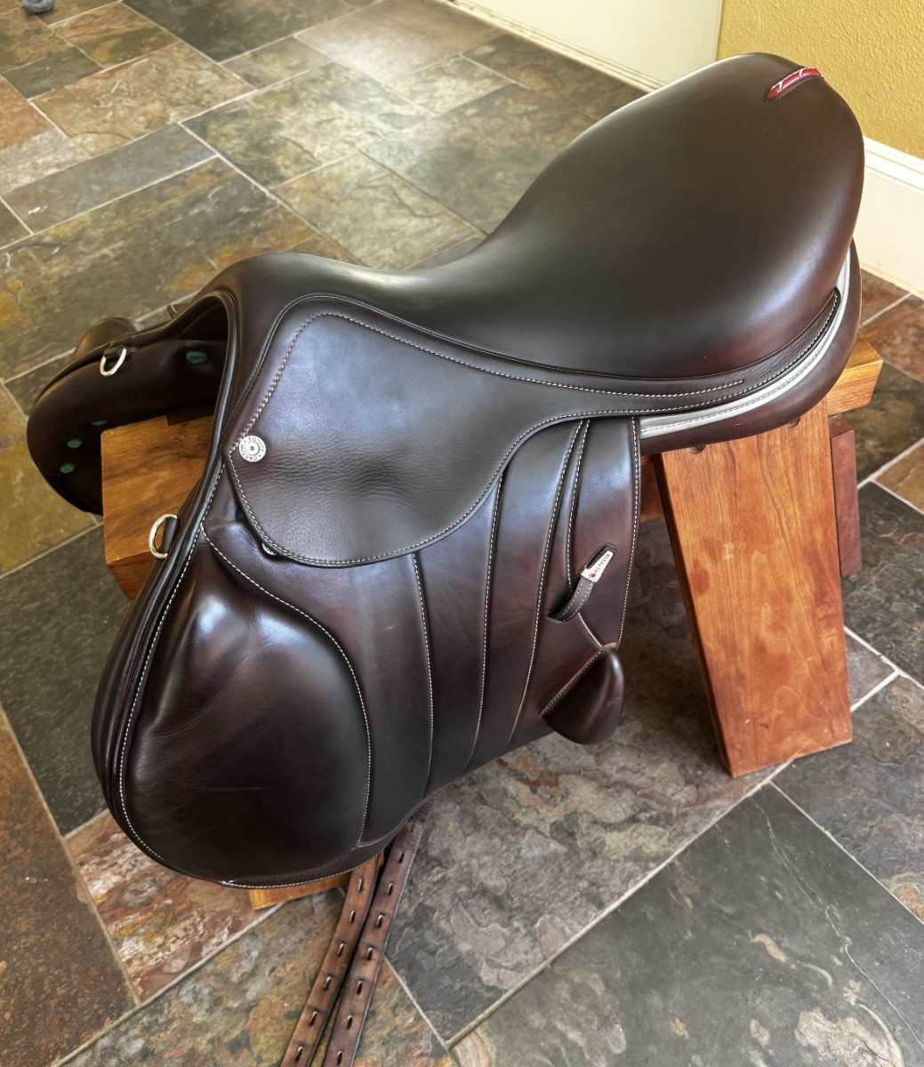 This saddle is in great condition (2020). 17.5″ with forward flap, calfskin, carbon fiber tree. PM for questions, saddle fitting onsite or remote. I am a saddle fitter for Equipe in TX/OK.