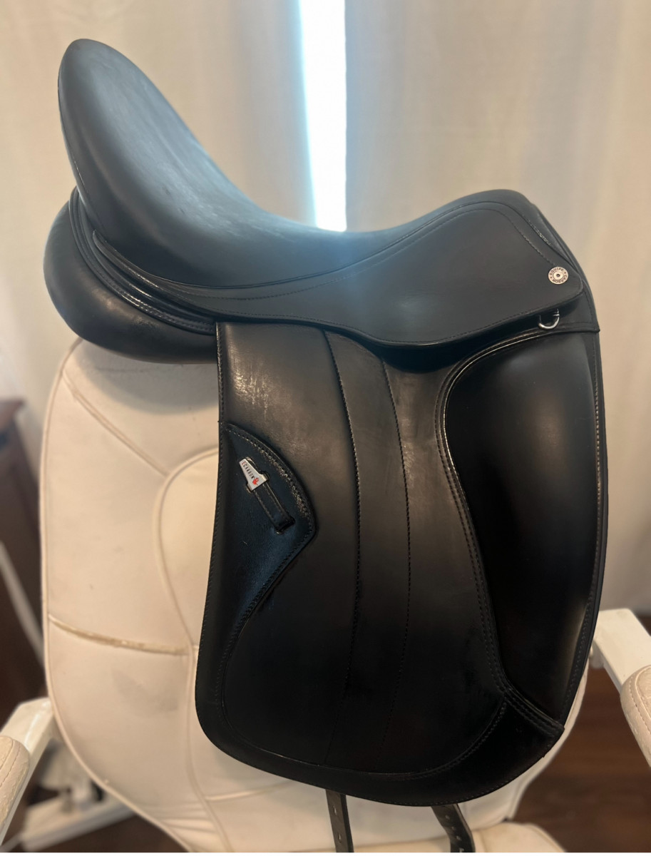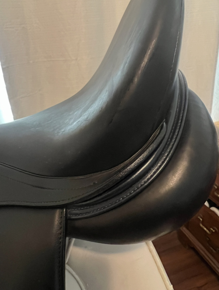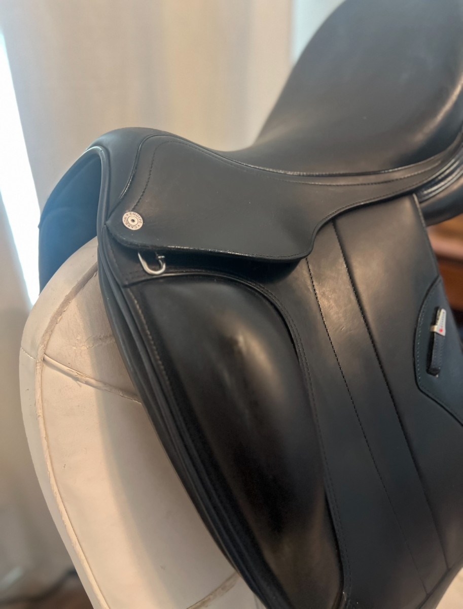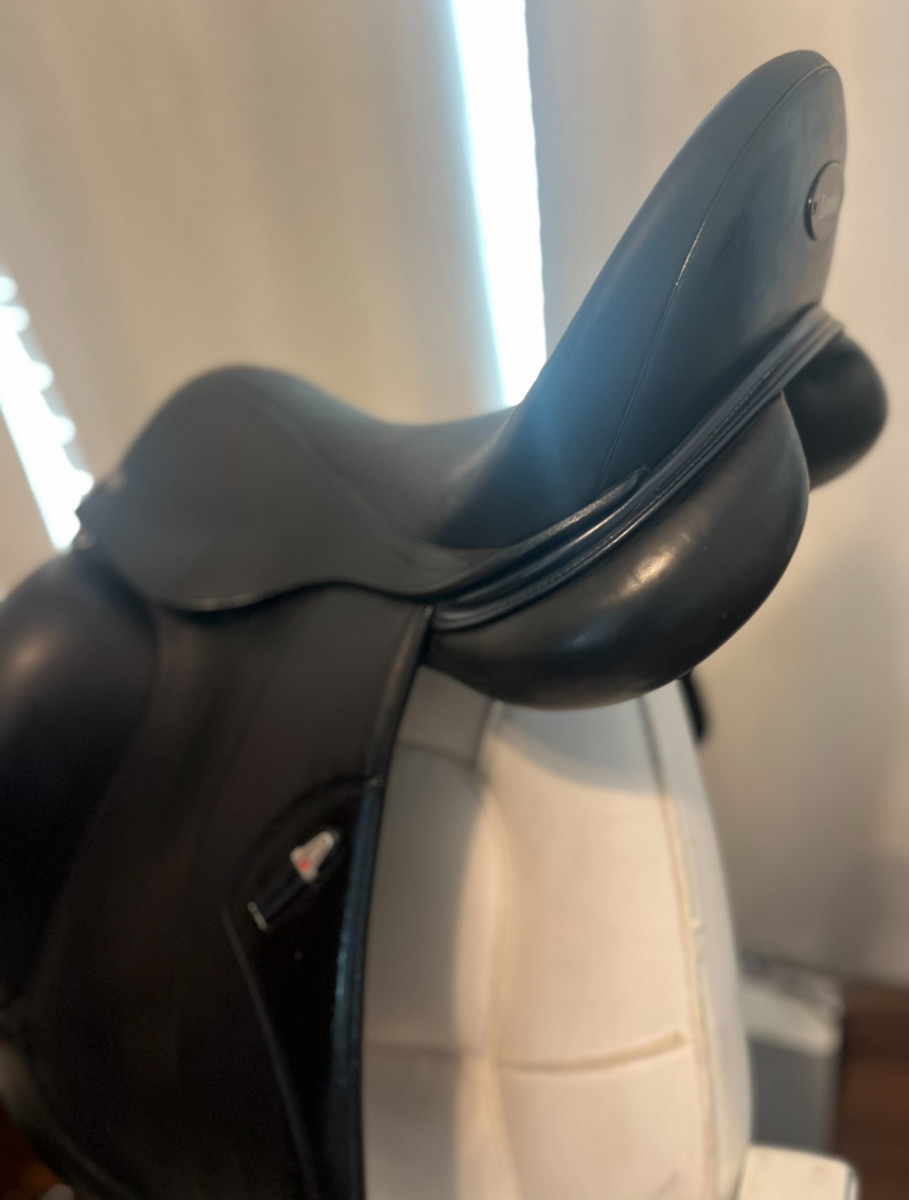 Like New Kalifornia, Immaculate condition. Manufactured October 2023 comes with our new changeable carbon fiber tree. Navy blue rear welting and stirrup keepers. Saddle fitting possible in TX/OK by authorized Equipe saddle fitter. Remote possible as well.