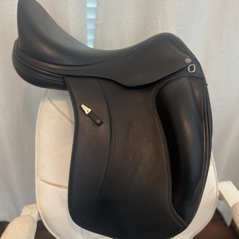 Like new, ridden in 5 times. Dressage saddle Karina, 17 inch, immaculate condition, black calfskin with white stitching, padded skirts, +1, +1, 2021, changeable composite tree. Saddle fitting available in TX/OK with authorized Equipe fitter. Remote fitting also possible.