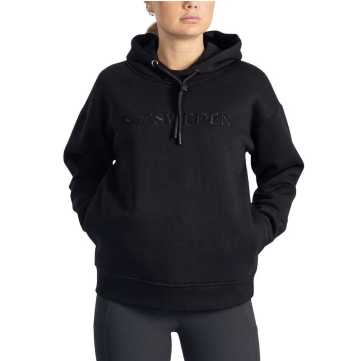 Soft, comfortable hoodie designed with a super smooth inside and drawstrings. The hoodie has a straight boxy fit and is designed with two spacious pockets on both sides, and a text logo embroidery in front.