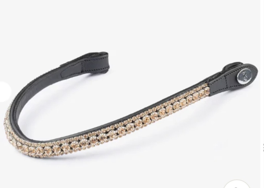 Our beloved Delight crystal browbands are finally making a comeback, the delight browband comes with three rows of high-quality crystals. This browband features a U-shaped design to avoid pressure on the horse’s forehead and eyeball. As if that weren’t enough, the browbands are provided with an inside layer of rubber, so-called “anti-slip” which will keep the browband in place on the headpiece. The browband has our unique Click It™ function which enables you to easily change the browband in a matter of seconds without having to remove it from the horse’s head. Fits perfectly with our flat bridles and bridle parts. * Italian vegetable-tanned leather * Metallic PS logo button on closure