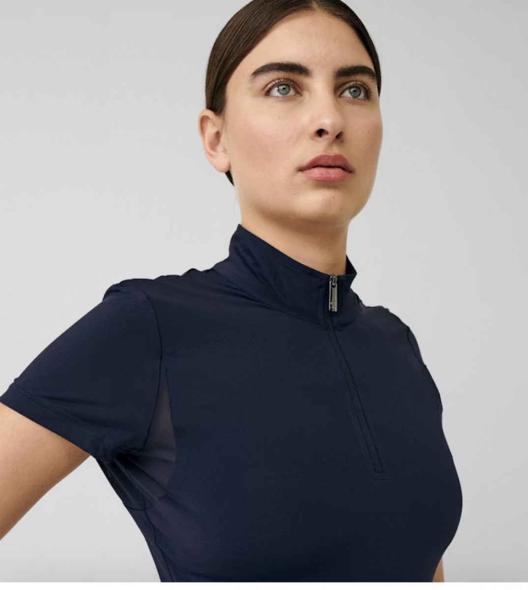 A short-sleeved half-zip top, crafted from a functional blend of polyamide and elastane. Its streamlined fit offers both comfort and versatility, making it an ideal addition to any equestrian
