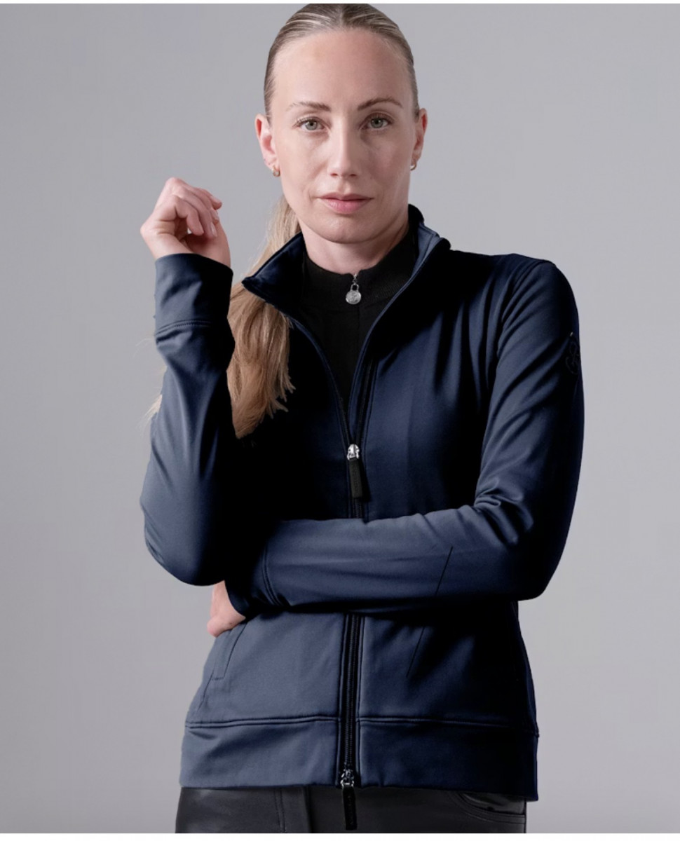 Mid-weight zip jacket crafted from soft and stretchy scuba feel jersey.