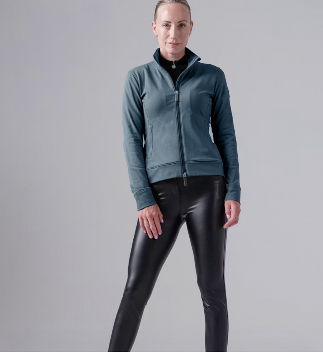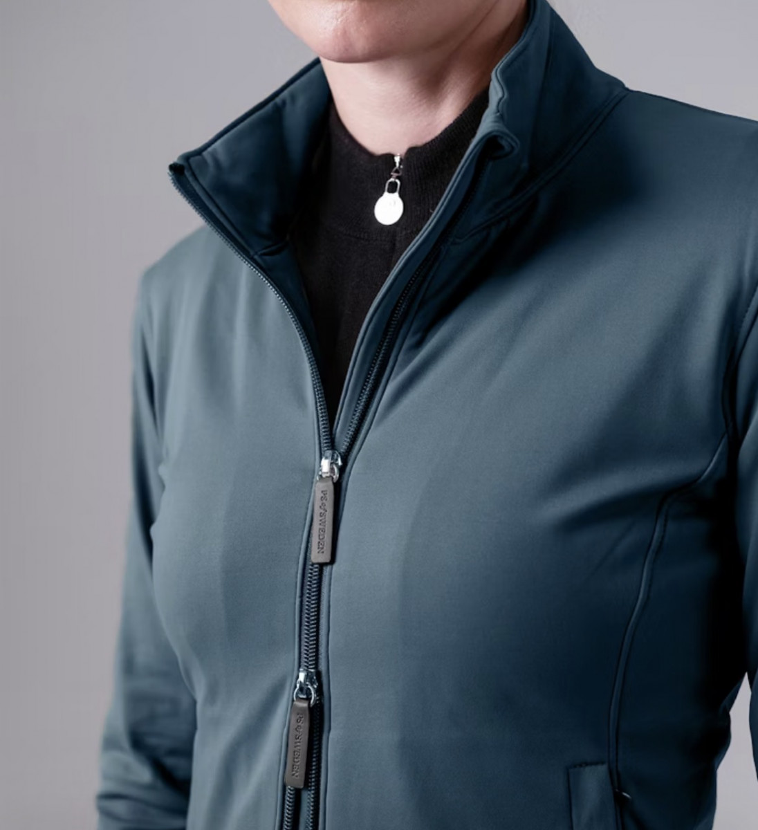 Mid-weight zip jacket with a stand-up collar crafted from soft and stretchy scuba feel jersey. Features sporty cutlines at front and back for a flattering fit.