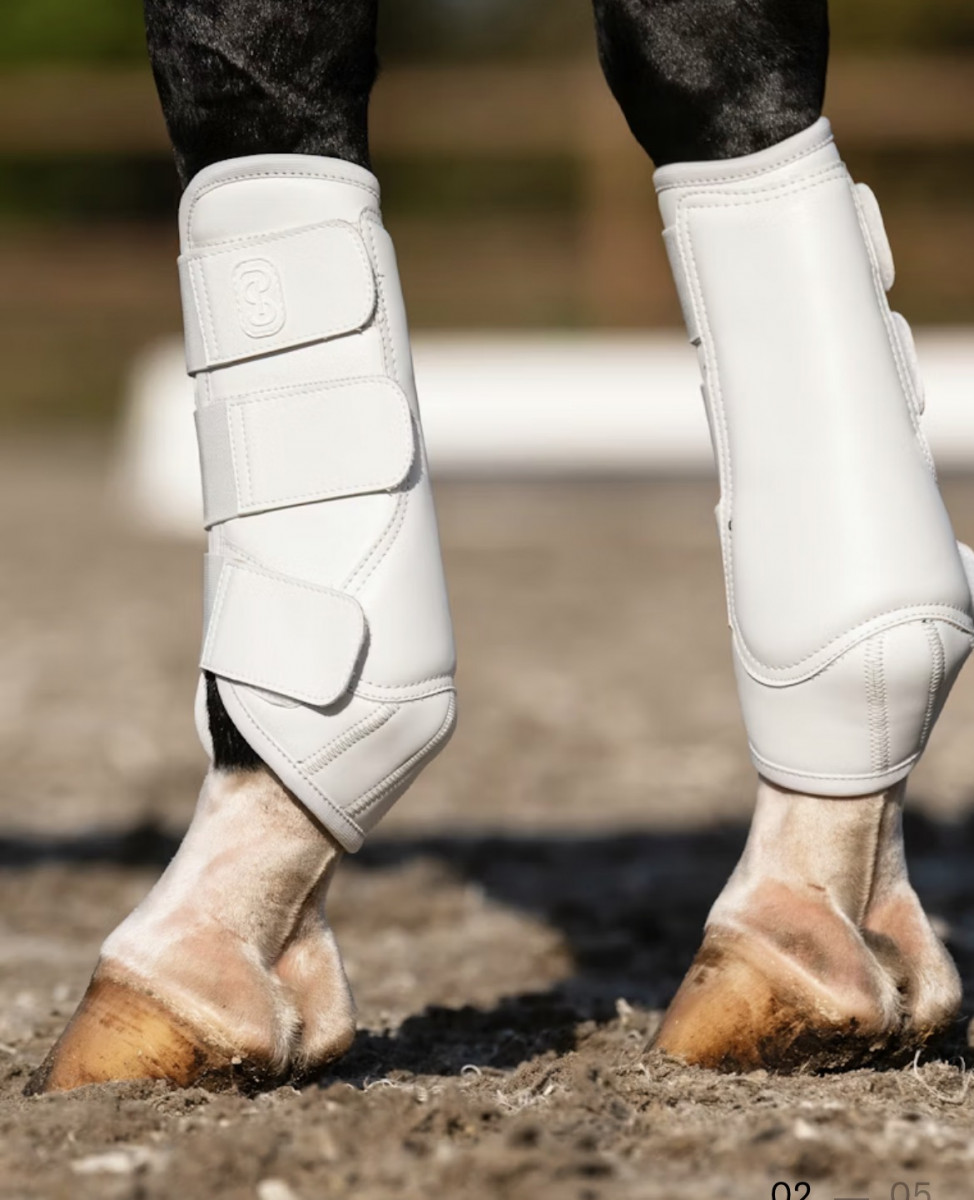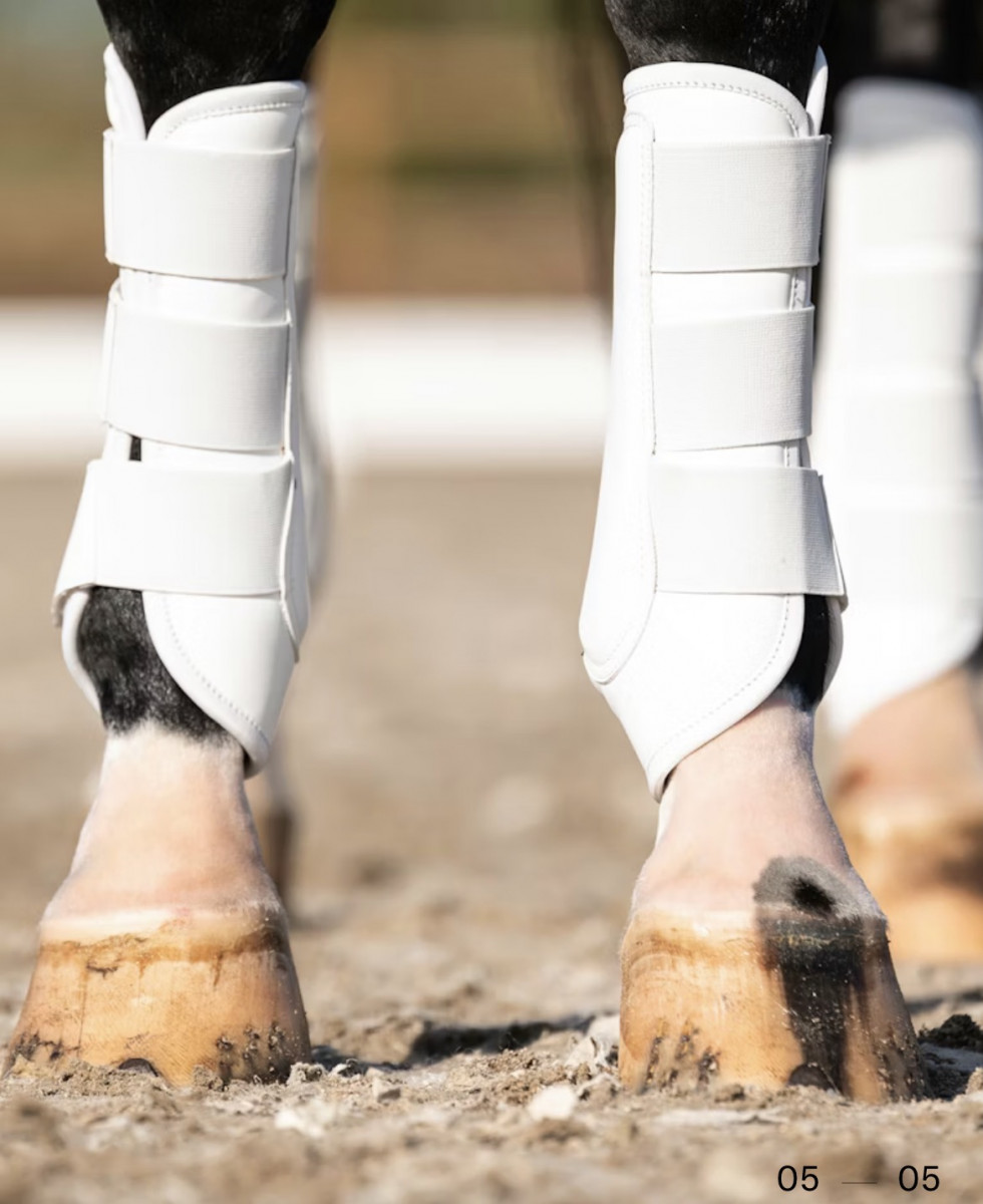 Flexible 3D Mesh exercise boots, made with vegan leather, designed for superior shock absorption and pressure distribution to protect the horse’s legs from impacts and injuries. Their highly breathable construction helps prevent overheating, keeping the legs cool and comfortable during intense training or competition