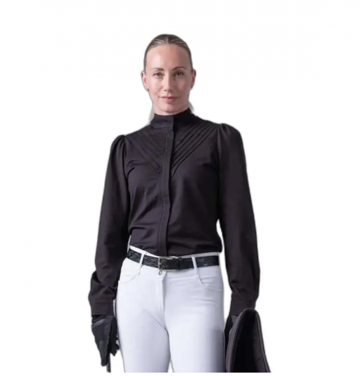 This long-sleeved blouse is a timeless staple, crafted from a refined cotton-polyester stretch blend for comfort and breathability.